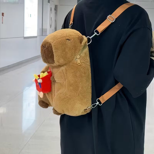 Mochila de peluche de Capibara con papas fritas felices